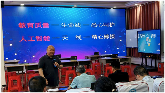 午后的評課議課環(huán)節(jié),教師們交流研討,碰撞思維火花。緊接著,王輝帶來微報告《中小學信息科技項目式教學設(shè)計與AI賦能教學途徑初探》,深入剖析AI與教學融合路徑。