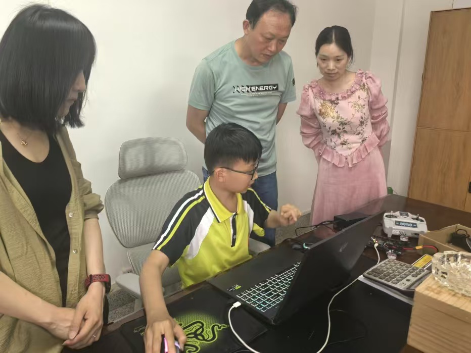 慰問過程中,校領(lǐng)導(dǎo)了解了林昊軒同學(xué)的備賽情況,對他刻苦鉆研、勇于挑戰(zhàn)的精神給與高度贊揚。據(jù)了解,林昊軒同學(xué)對科技創(chuàng)新有著濃厚的興趣,自接觸這一領(lǐng)域,他利用課余時間刻苦鉆研編程知識,反復(fù)練習(xí)機器人操作技巧。從基礎(chǔ)的編程邏輯學(xué)起,逐步掌握復(fù)雜的飛行軌跡規(guī)劃與機器人協(xié)同控制技術(shù)。備戰(zhàn)國賽期間,他試飛無人機出現(xiàn)意外,模型突然炸機,但他沉著鎮(zhèn)定、不氣餒。他說:“能代表隨州參加國賽,我感到無比自豪!每一次編程調(diào)試、每一次飛行嘗試都是成長的寶貴經(jīng)驗!