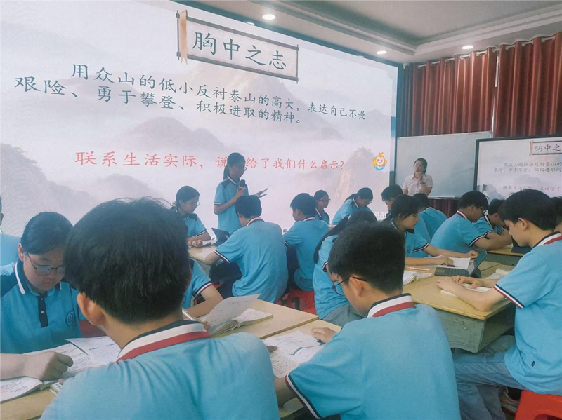 蔣靜老師執(zhí)教七年級(jí)語文AI融合課《登高望遠(yuǎn) 思接千載——登臨詩(shī)群文閱讀》,借助智能平臺(tái)實(shí)現(xiàn)詩(shī)歌情感分析與跨時(shí)空對(duì)話,學(xué)生沉浸于詩(shī)意情境,學(xué)科素養(yǎng)與AI應(yīng)用能力同步提升。