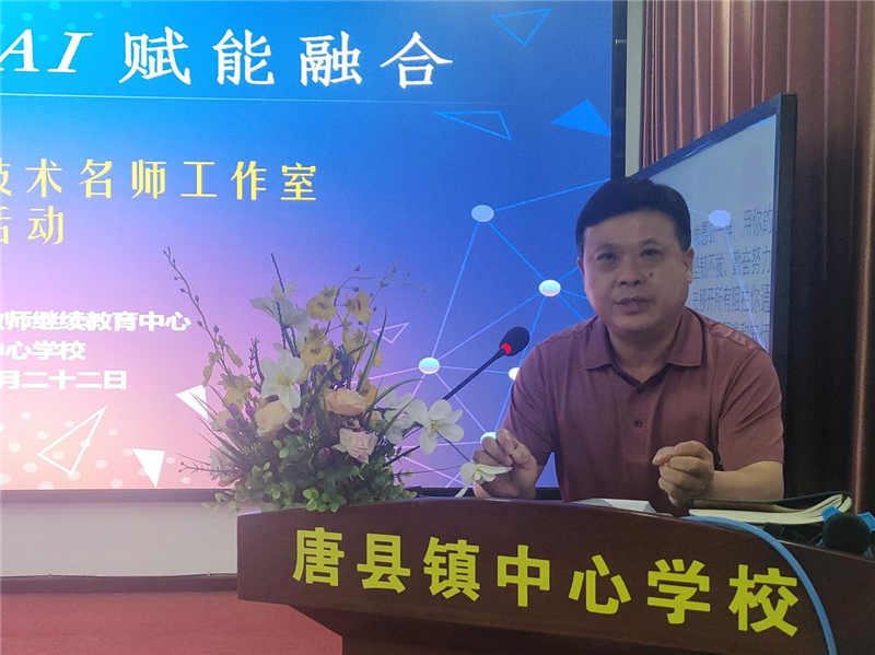 活動(dòng)伊始,唐縣鎮(zhèn)中心學(xué)校校長(zhǎng)吳小林在開班儀式上發(fā)表熱情致辭。他代表學(xué)校對(duì)送教團(tuán)隊(duì)和參訓(xùn)教師表示熱烈歡迎。他說:“本次培訓(xùn)是城鄉(xiāng)教育資源共享的生動(dòng)實(shí)踐,唐縣鎮(zhèn)將以此次活動(dòng)為契機(jī),打造智慧教育示范窗口,為鄉(xiāng)村學(xué)生插上AI時(shí)代的翅膀!眳切iL(zhǎng)還特別提到,學(xué)校將全力保障培訓(xùn)落地,推動(dòng)“技術(shù)賦能課堂”從理念走向?qū)嵺`,為教育均衡發(fā)展注入活力。