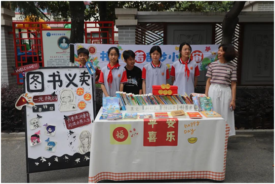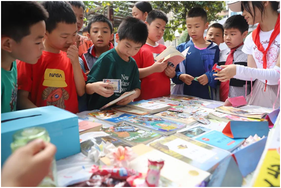 學(xué)校主場(chǎng)文藝表演結(jié)束后,“感恩母校 傳遞書香 ”畢業(yè)生書籍捐贈(zèng)及感恩義賣活動(dòng)正式開啟!耙辉X 千分愛”。筑夢(mèng)路上,六年級(jí)學(xué)哥、學(xué)姐帶上自己最喜歡的書籍,題寫上最好的祝福,早早擺好義賣書攤。學(xué)弟、學(xué)妹遞上一元錢,買到一本好書,開心、快樂洋溢在他們的笑臉上。這是熱愛讀書的實(shí)小學(xué)子用實(shí)際行動(dòng)點(diǎn)燃?jí)粝、傳遞書香,也是心懷陽(yáng)光的實(shí)小少年用實(shí)際行動(dòng)書寫感恩、傳遞快樂。
