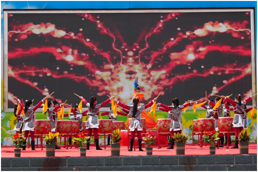 入隊(duì)儀式后,五年級(jí)的小演員們以非遺傳承節(jié)目《鼓舞中國(guó)》震撼開場(chǎng)。鼓聲雷動(dòng),水袖飛揚(yáng),小演員們身著傳統(tǒng)服飾,手持鼓槌擊出鏗鏘有力的節(jié)奏,柔美的水袖舞姿如行云流水,剛?cè)岵?jì)的表演展現(xiàn)了中華文化的磅礴氣韻,點(diǎn)燃全場(chǎng)熱情。
