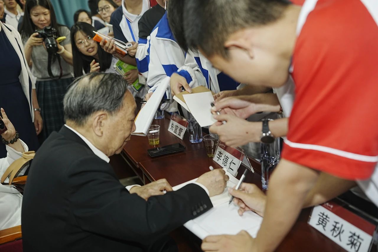 講座現(xiàn)場,李德仁院士以淵博的學(xué)識、生動的案例、真摯的情感,為師生們帶來了一場震撼心靈的精神洗禮。學(xué)生們?nèi)褙炞Ⅰ雎,不時報以熱烈掌聲。李院士在講學(xué)中分享的 “活到老,學(xué)到老,干到老,為黨和人民奉獻到老”,為我們每個人敲響了奮進的戰(zhàn)鼓。這種精神,應(yīng)成為我們在座每一位同學(xué)的座右銘。講座結(jié)束后,同學(xué)們紛紛表示深受觸動。一位學(xué)生激動地說:“李院士的經(jīng)歷讓我深刻理解了‘科技報國’四個字的分量,他不僅是科學(xué)界的泰斗,更是我們學(xué)習(xí)的榜樣。我會以他為目標(biāo),努力學(xué)習(xí),將來用知識為祖國的科技發(fā)展添磚加瓦!蔽倚1998屆杰出校友、杭州乒乓智能創(chuàng)始人熊偉隨后也以自己的親身經(jīng)歷鼓勵同學(xué)們要有遠(yuǎn)大的抱負(fù)和為國為民的雄心。