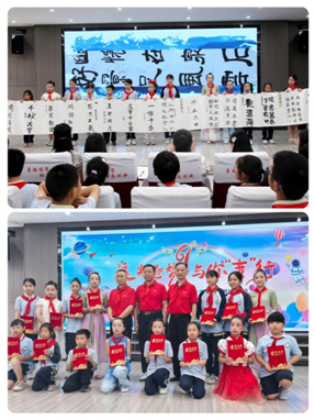 活動中,書法社團的優(yōu)秀作品同步展示,工整美觀的書法作品彰顯著孩子們扎實的功底。匯演尾聲,老年書法協(xié)會的領(lǐng)導們還對優(yōu)秀作品進行頒獎,表揚孩子們的努力與進步。