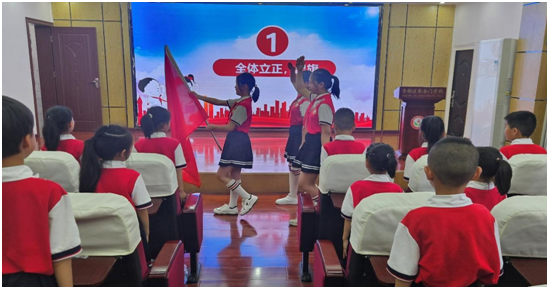 伴隨著激昂的《出旗曲》,旗手們高舉隊旗昂首前行,拉開了入隊儀式的序幕。