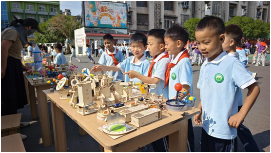 科技、手工制作展區(qū)里,孩子們自主設計的智能小車、航天模型等科技作品輪番亮相,將創(chuàng)意與科學實踐巧妙結(jié)合。孩子們化身小小科學家、發(fā)明家,用天馬行空的想象、靈巧的雙手,將廢舊材料、日常物品賦予新的生命,創(chuàng)造出一件件令人驚嘆的作品。每一件展品都凝聚著智慧的光芒,每一個創(chuàng)意都承載著探索的渴望。期待這群小小“科學家”繼續(xù)以好奇為筆、以實踐為墨,在更廣闊的科學天地中書寫屬于自己的精彩篇章!