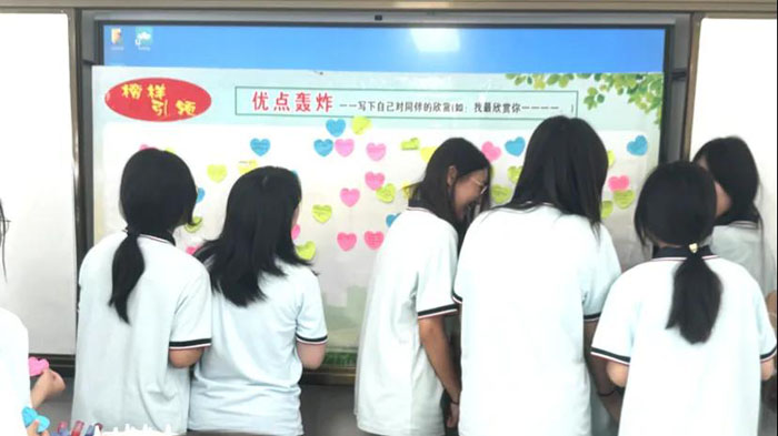 優(yōu)點(diǎn)轟炸墻:用積極關(guān)注重建自我認(rèn)知。 積極心理學(xué)之父塞利格曼強(qiáng)調(diào),"發(fā)現(xiàn)優(yōu)勢(shì)比修補(bǔ)缺陷更重要"。他人視角的積極反饋,能打破青少年常見的"自我否定偏差"。 我最欣賞你:很有感染力的微笑;我最欣賞你:對(duì)事情積極樂觀的心態(tài);……,這些溫暖的語(yǔ)言都是照亮心靈的"微光",最終匯聚成屬于集體的"銀河"。