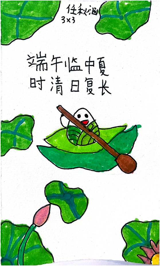 一至三年級(jí)的同學(xué)則以翰墨丹心寄情,繪制“紅領(lǐng)巾愛(ài)祖國(guó)”主題書(shū)簽,用稚嫩的筆觸勾勒祖國(guó)版圖,以工整的筆跡謄寫(xiě)飽含深情的愛(ài)國(guó)詩(shī)詞。粽香、藥香、墨香交織,民俗的韻味在歡聲笑語(yǔ)中流轉(zhuǎn)傳承。