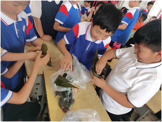 主題班隊(duì)會(huì)上,端午民俗以繽紛童趣的姿態(tài)“活”了起來(lái)。四至六年級(jí)的孩子們化身巧手小匠,親手包裹棱角分明的香粽,穿針引線縫制芳香四溢的艾草香囊,指尖翻飛編織象征吉祥的五彩絲線。