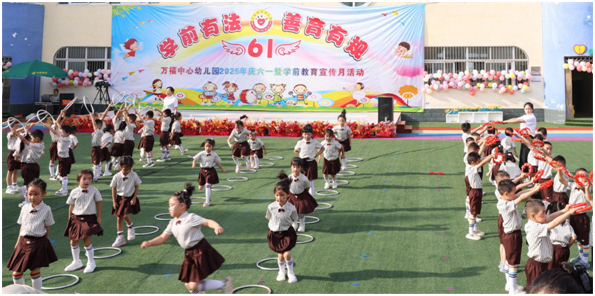 在萬福店幼兒園里,小朋友們化身小小運動員、舞獅少年、AI機器人,還有穿鞋小能手,在陽光下盡情展示活力與童真。伴著動感的音樂,孩子們手持彩繩、圈圈,隊形一會兒變十字,一會兒變圓圈,像一群快樂的小精靈!小風箏飛得高,法治線繩牽得牢;醒獅少年躍動非遺,京劇臉譜唱響傳承;AI機器人炫酷登場,非洲鼓敲出“蘋果香”……還有《狼來了》教誠信,《幫幫我》傳遞溫暖,每一個節(jié)目都藏著成長的密碼!