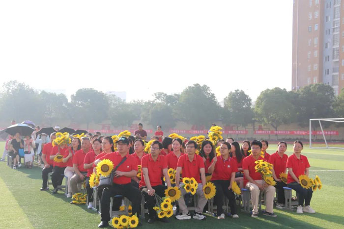 梁勇、童以剛等學(xué)校全體領(lǐng)導(dǎo)班子成員依次為全體高三學(xué)生送上巧克力,寓意力拔頭籌、攻克難關(guān),表達(dá)對(duì)學(xué)子的美好期許。