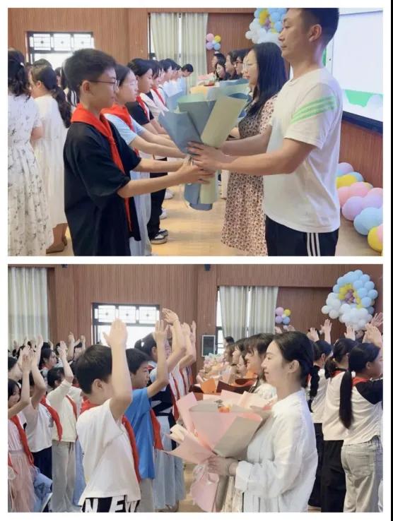 典禮伊始,全體畢業(yè)生以一首《像你這樣的朋友》點(diǎn)燃全場。一曲唱罷,六年級成長紀(jì)錄片隨之播放,熒幕上的每一幀畫面,都是孩子們成長的印記,從稚嫩孩童到翩翩少年,時(shí)光在此定格。千言萬語,訴不盡殷殷期盼,校領(lǐng)導(dǎo)回溯往昔,從晨讀時(shí)的書聲瑯瑯到賽場上的奮力拼搏,樁樁件件皆是成長印記。以歌曲為喻,勉勵(lì)孩子們勇于挑戰(zhàn),在人生的舞臺奏響屬于自己的獨(dú)特旋律。母校永遠(yuǎn)是溫暖的港灣,期待學(xué)子常歸,共赴星河萬里,續(xù)寫青春華章。