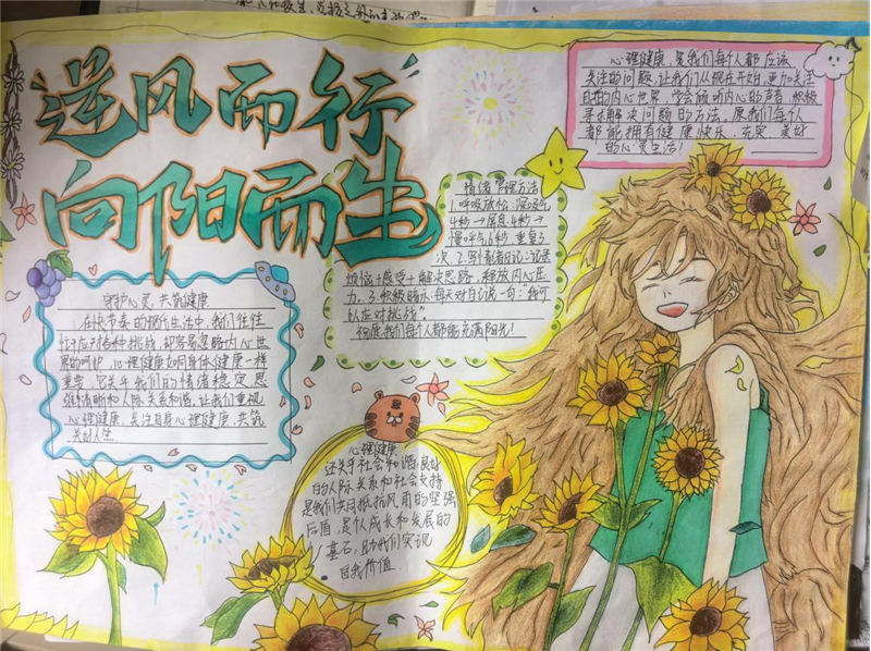 此次展覽匯集了同學(xué)們精心創(chuàng)作的優(yōu)秀手抄報和感恩書信作品。手抄報上,豐富的色彩搭配巧妙,圖文并茂,從不同角度展現(xiàn)了學(xué)生們對心理健康知識的理解與思考,有的描繪了積極心態(tài)對生活學(xué)習(xí)的重要性,有的分享了緩解壓力的小技巧,還有的通過漫畫形式呈現(xiàn)出心靈成長的歷程,每一張都凝聚著學(xué)生的創(chuàng)意與心血,傳遞出對美好心靈的向往與追求。