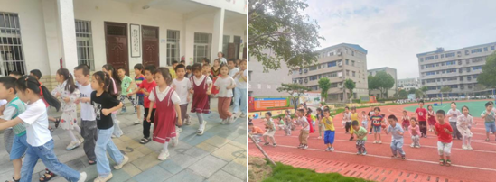 伴隨著歡快的音樂和口令,孩子們加入了小學的跑操和早操隊伍。他們努力模仿哥哥姐姐的動作,體驗小學充滿活力的晨間鍛煉,感受校園生活的蓬勃生機。
