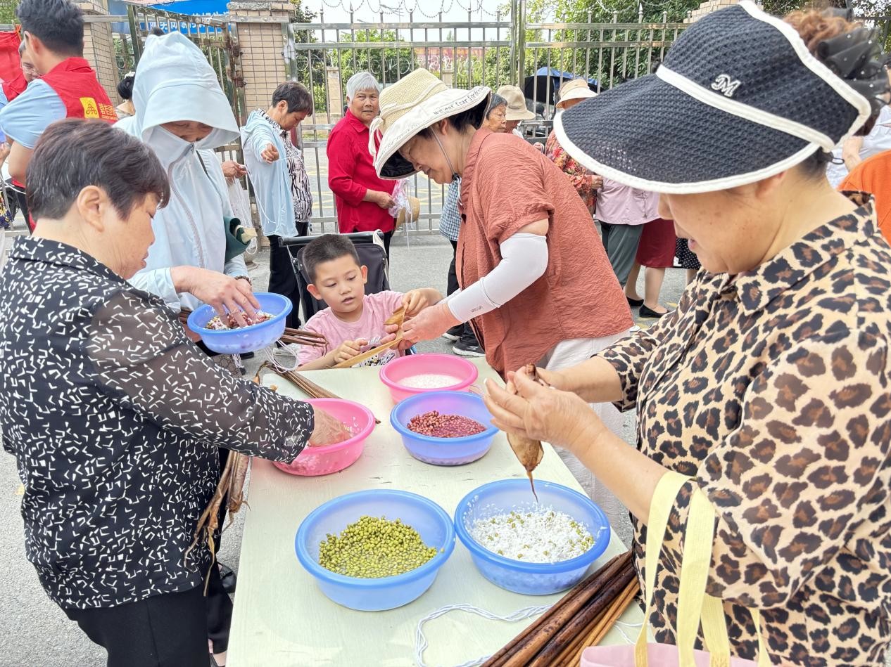 在涢水社區(qū),“五彩涢水 端午共敘鄰里情”活動現(xiàn)場暖意融融。街道包保干部深入一線,與老年大學學員、“涢水大媽”志愿者、物業(yè)人員及居民們歡聚一堂。傳統(tǒng)美食制作區(qū)成了溫情課堂,“涢水大媽”化身巧手導師,耐心傳授粽葉包裹技巧。烘焙爐前,居民們協(xié)作制作艾草青團、創(chuàng)意五彩饅頭,香甜氣息里流淌著互助關懷。文化舞臺區(qū)更是精彩紛呈,經(jīng)典紅歌激昂唱響,民俗舞蹈靈動演繹,生動傳遞端午文化精髓,穿插其中的端午知識趣味問答,更讓文化傳承在歡聲笑語中扎根。粽葉間的默契配合、烘焙時的真誠分享、舞臺下的熱烈掌聲,共同編織成緊密的鄰里紐帶。