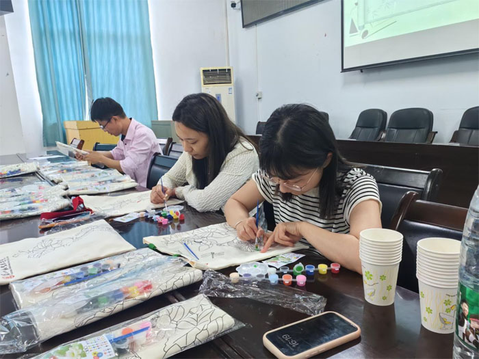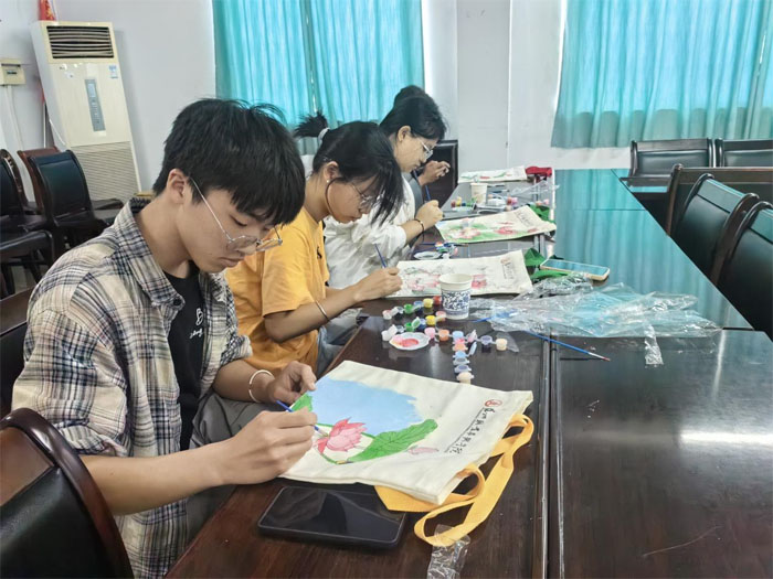同學(xué)們專注創(chuàng)作,相互交流心得,在藝術(shù)實(shí)踐中潛移默化地接受了廉潔文化的熏陶。一個(gè)個(gè)原本素樸的帆布袋,在同學(xué)們的巧思妙手下,化身為承載廉潔理念、彰顯青春正氣的獨(dú)特藝術(shù)品。