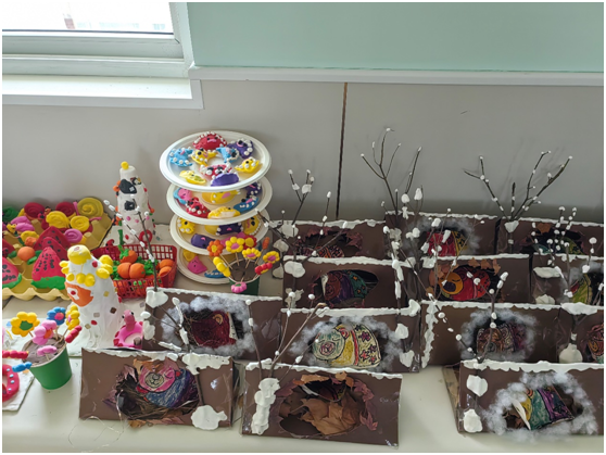 在活動籌備環(huán)節(jié),全園教師群策群力,對本學(xué)期保教工作亮點進(jìn)行系統(tǒng)梳理與深度挖掘。各班教師依據(jù)幼兒的年齡特征與發(fā)展目標(biāo),充分發(fā)揮創(chuàng)意,科學(xué)規(guī)劃并精心布置展示區(qū)域。從主題課程中幼兒們的探索歷程,到其在健康、語言、社會、科學(xué)、藝術(shù)五大領(lǐng)域的學(xué)習(xí)收獲;從區(qū)域活動里孩子們專注投入的精彩畫面,到特色活動中閃現(xiàn)的奇思妙想,均借助圖文并茂的展板、精致的手工作品、生動的視頻等多元形式予以呈現(xiàn)。孩子們親手制作的色彩絢麗的手工藝品、充滿童真童趣的繪畫作品,記錄下他們探索世界的珍貴足跡;詳實的主題課程探究報告、精彩的學(xué)習(xí)故事,則生動展現(xiàn)出幼兒思維能力逐步發(fā)展的過程。