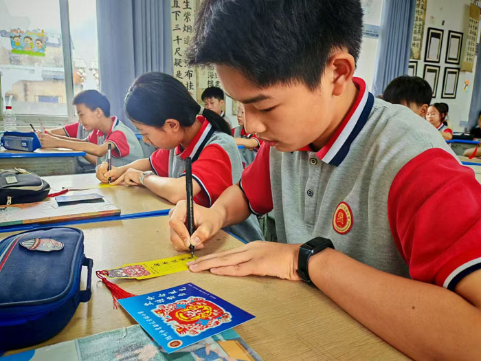 一張張精美的剪紙書簽和明信片傳遞到畢業(yè)生手中。這些禮物均出自低年級學(xué)生之手,剪紙書簽上,俏皮可愛的哪吒造型,融入了傳統(tǒng)剪紙藝術(shù)的精巧,寓意畢業(yè)生們“揚(yáng)帆起航”“鵬程萬里”;畢業(yè)生們小心翼翼地接過禮物,感動之情溢于言表,紛紛表示這是最珍貴的畢業(yè)紀(jì)念。