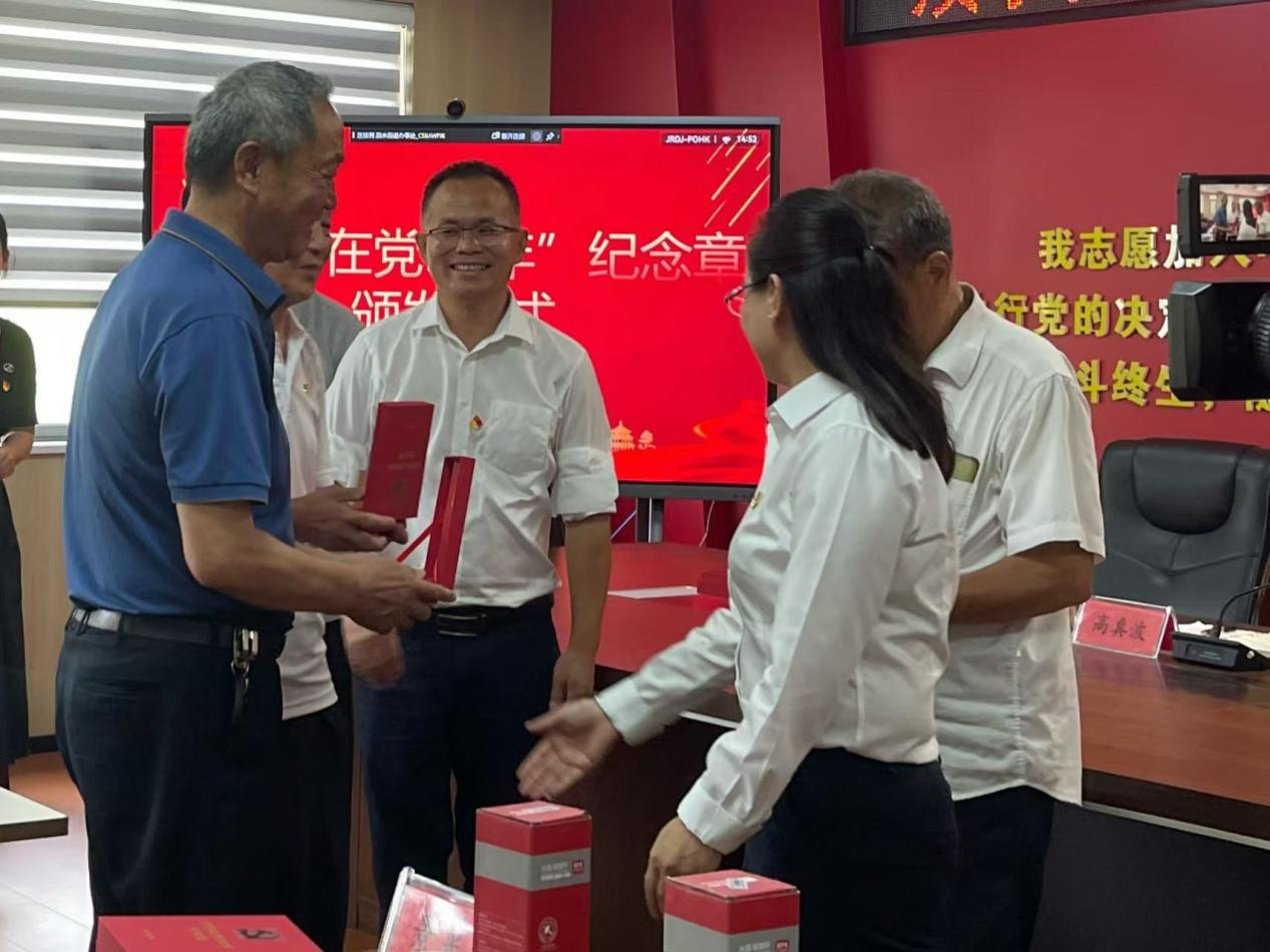 黨工委書記高真波將沉甸甸的“光榮在黨50年”紀(jì)念章,送到8位老黨員手中,與他們親切握手、合影留念,向他們致以崇高的敬意和誠摯的感謝。金色的黨徽、閃耀的五角星、奪目的旗幟,是對老黨員們多年來忠誠于黨、奉獻(xiàn)于黨的肯定,更激勵了全體黨員賡續(xù)紅色血脈、傳承革命精神。