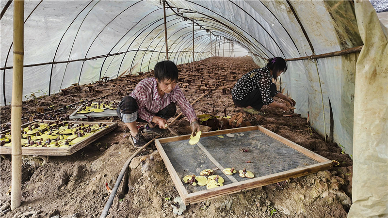 積累經(jīng)驗(yàn)和資金后,2014年3月在當(dāng)?shù)卣拖嚓P(guān)部門(mén)的幫助下,陳力創(chuàng)辦了隨縣涢陽(yáng)強(qiáng)力農(nóng)機(jī)服務(wù)專(zhuān)業(yè)合作社。他投資600萬(wàn)元,征地57畝,引進(jìn)先進(jìn)自動(dòng)化設(shè)備,合作社日均制棒能力達(dá)2萬(wàn)棒。2017年,合作社種植香菇10萬(wàn)棒,銷(xiāo)售袋料8萬(wàn)袋,產(chǎn)鮮菇20萬(wàn)斤,產(chǎn)值突破百萬(wàn)元;2020年,他帶動(dòng)周邊3個(gè)村合作種植,助力村民增收。 創(chuàng)業(yè)之路并非坦途。2016年一場(chǎng)洪水卷走3萬(wàn)根菌棒、沖垮大棚,蹲在泥濘中的陳力淚如泉涌,卻揪著心:“跟著我干的殘疾人怎么辦?”在社會(huì)各界的援助下,他重燃斗志,新大棚建好時(shí)立下誓言:“菌棒可以沖走,骨頭絕不能沖軟!” 為增強(qiáng)抗風(fēng)險(xiǎn)能力,2017年陳力盯上靈芝種植。他發(fā)現(xiàn)靈芝生長(zhǎng)期能填補(bǔ)香菇養(yǎng)菌空檔,便多次赴華中農(nóng)業(yè)大學(xué)求教,更遠(yuǎn)赴福建,以真誠(chéng)和執(zhí)著打動(dòng)一藥廠負(fù)責(zé)人,不僅獲得技術(shù)真?zhèn),更與對(duì)方簽下兜底回購(gòu)協(xié)議。如今,30余個(gè)靈芝大棚年產(chǎn)烘干干品6000多斤,經(jīng)福建藥廠加工成粉遠(yuǎn)銷(xiāo)日韓,今年僅此一項(xiàng)就收入35萬(wàn)元。 他還探索“四季輪作”模式:廢菌棒混入雞糞制成有機(jī)肥,滋養(yǎng)40畝百部、10畝黃花敗醬草;試種3畝羊肚菌成為增收“奇兵”!按涸韵愎较姆N芝,秋培藥材冬備料”的絕活,推動(dòng)合作社年產(chǎn)值躍至280萬(wàn)元,帶動(dòng)周邊300戶(hù)農(nóng)戶(hù)學(xué)技術(shù)、拓銷(xiāo)路。 助殘扶弱