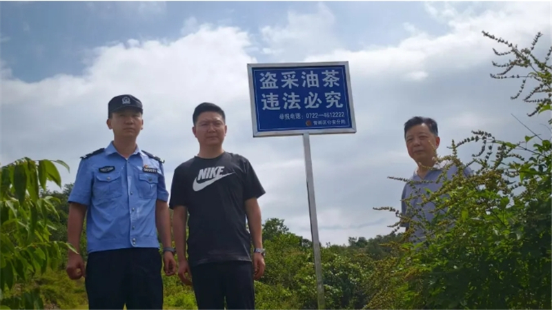 得知企業(yè)困境,萬店鎮(zhèn)迅速響應(yīng),將護航特色產(chǎn)業(yè)發(fā)展、優(yōu)化營商環(huán)境落到實處。民警深入基地實地勘察,通過無人機巡飛,精準研判盜采易發(fā)區(qū)域和路徑。在油茶基地內(nèi)外栽下多處警示牌,這些警示牌清晰標注“禁止盜采油茶果”的警示語,并公布了舉報電話,形成強大的警示提醒。