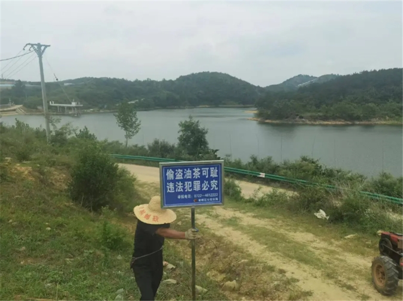 7月12日上午,萬店鎮(zhèn)黨委委員、紀委書記、派出監(jiān)察室主任李威協(xié)同鎮(zhèn)黨委委員、派出所所長熊志良和派出所民輔警一同前往新中村田豐油茶基地,協(xié)助基地工作人員在基地多處主干道、岔路口豎起一塊塊“嚴禁盜采油茶”的宣傳警示牌。