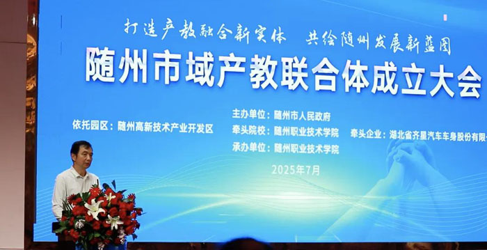 隨州新聞網(wǎng)訊 (通訊員肖新俊、楊莉)7月22日上午,隨州舉行市域產(chǎn)教聯(lián)合體成立大會。大會由隨州市人民政府主辦、隨州職業(yè)技術(shù)學(xué)院承辦,以隨州高新技術(shù)產(chǎn)業(yè)園區(qū)為依托,牽頭單位為隨州高新技術(shù)產(chǎn)業(yè)開發(fā)區(qū)管理委員會,牽頭職業(yè)院校為隨州職業(yè)技術(shù)學(xué)院,牽頭企業(yè)為湖北省齊星汽車車身股份有限公司。