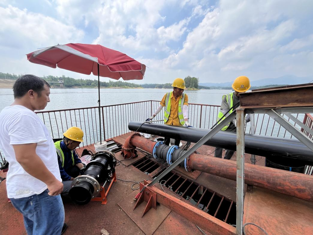 受持續(xù)干旱影響,水庫水位急劇下降,源水取水面臨嚴(yán)峻挑戰(zhàn)。公司迅速行動(dòng),針對(duì)不同情況精準(zhǔn)施策:針對(duì)沙河口水廠,緊急完成配電設(shè)備改造升級(jí),確保取水泵機(jī)組在極端條件下穩(wěn)定運(yùn)行;針對(duì)柳林白果河水庫取水點(diǎn),因水庫水位過低取水困難,果斷將取水口向上游遷移1公里,有效保障源水供應(yīng)和水質(zhì)安全;針對(duì)殷店天河口水廠制水能力不足問題,緊急增設(shè)取水泵機(jī)組,提升水廠產(chǎn)水能力,確保供水穩(wěn)定。