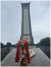 經(jīng)過短暫的休整,下午隊伍抵達蒼松翠柏掩映下的黃麻起義和鄂豫皖蘇區(qū)革命烈士陵園。雨絲漸密,更顯莊嚴肅穆。在巍峨的革命烈士紀念碑前,全體人員肅立,敬獻花籃,三鞠躬深切緬懷為革命勝利獻出寶貴生命的先烈們向他們致以最崇高的敬意。