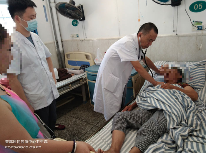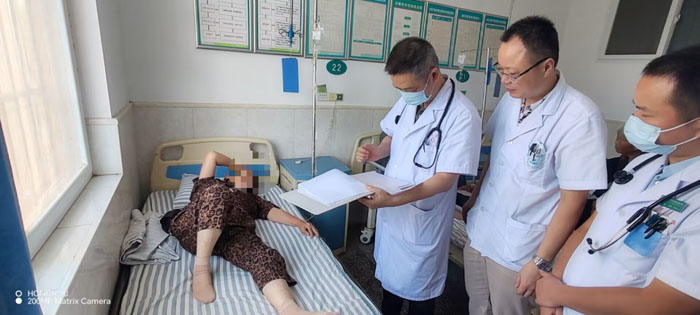 義診結(jié)束后,蔣若瑜教授與曾都醫(yī)院呼吸與危重癥醫(yī)學科主任汪小春、神經(jīng)內(nèi)科主任李洪斌等專家并未停歇,馬不停蹄前往何店鎮(zhèn)中心衛(wèi)生院內(nèi)科住院部開展教學查房。他們深入病房詳細了解患者病情,重點針對一例慢阻肺急性加重期患者、一例冠心病心衰患者及一例心律失常患者進行多學科聯(lián)合會診,憑借專業(yè)判斷為患者優(yōu)化了更精準、有效的治療方案。