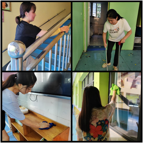 老師們?nèi)ν度胄l(wèi)生消毒工作,對(duì)教室、午睡室、活動(dòng)區(qū)等區(qū)域進(jìn)行徹底清掃與消毒,擦拭門窗桌椅、清洗玩具器械,不遺漏每一個(gè)角落,確保孩子們回歸時(shí)迎來(lái)的是明亮潔凈、健康無(wú)憂的環(huán)境。