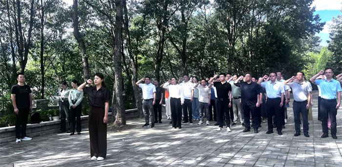 上午,參加活動的考務工作者們在隨州市九口堰紅色革命教育基地的烈士紀念碑前整齊列隊,敬獻花籃、緬懷先烈、重溫入黨誓詞。陽光透過松柏枝葉,與大家眼中的堅定目光交相輝映,仿佛跨越時空,與革命先輩的信仰產生深度共鳴。
