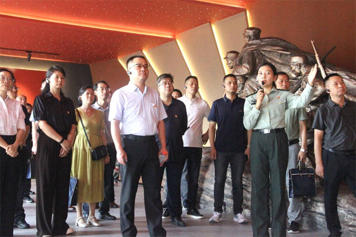 隨后,全體人員走進新四軍第五師革命歷史陳列館。館內,銹跡斑斑的步槍、泛黃的戰(zhàn)地日記、磨損的軍鞋靜靜陳列,無聲訴說著鄂豫邊區(qū)軍民浴血奮戰(zhàn)的崢嶸歲月;墻上的黑白照片里,戰(zhàn)士們與群眾并肩勞作、根據(jù)地辦學育人的場景,讓“堅守初心、服務人民”的精神內核愈發(fā)清晰!懊恳患奈锒际且欢熙r活的歷史,每一個故事都是一次深刻的教育。”