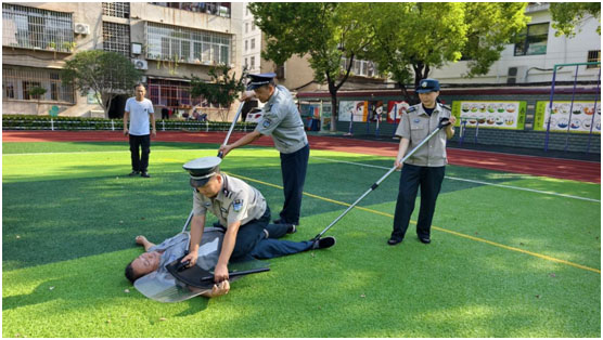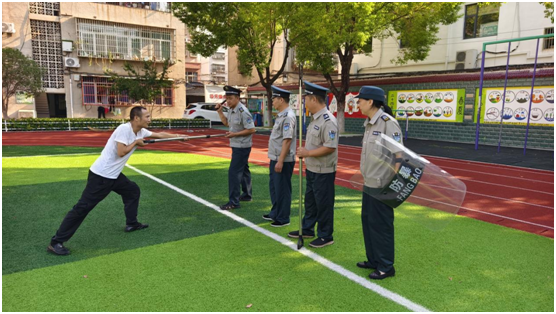 安保技能提升則聚焦“實(shí)戰(zhàn)實(shí)效”。學(xué)校特邀安保公司專業(yè)教官到校,圍繞早高峰人流疏導(dǎo)、突發(fā)沖突應(yīng)急處置、可疑人員識(shí)別等場(chǎng)景,開展沉浸式模擬演練。教官一對(duì)一指導(dǎo)防暴盾牌、鋼叉等器械的使用規(guī)范,演示一鍵報(bào)警裝置的操作流程;參訓(xùn)安保人員認(rèn)真聆聽,反復(fù)實(shí)操演練,從快速阻隔風(fēng)險(xiǎn)到有效安撫學(xué)生情緒,力求每個(gè)環(huán)節(jié)精準(zhǔn)、熟練。