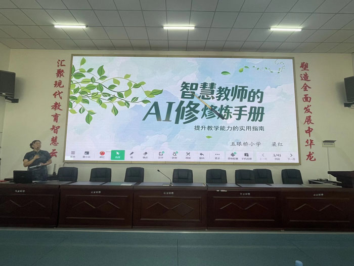 培訓內(nèi)容聚焦教師成長核心需求,用四天的時間分模塊有序開展。第一天的培訓由副校長張清廣以“師德建設(shè)”為主題,從師德內(nèi)涵闡釋與師德失范警示案例兩方面展開講解,引導教師堅守教育初心,筑牢職業(yè)底線;隨后,老師們分學科進行了新教材培訓活動。在第二天的培訓中來自五眼橋小學副校長梁紅開展人工智能應(yīng)用培訓,通過實操演示與案例分析,豐富教師對常見人工智能工具的認知,助力教師掌握科技教學新技能。