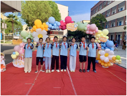 7 點(diǎn) 20分,學(xué)生們開(kāi)始陸續(xù)到校,“開(kāi)學(xué)迎新” 環(huán)節(jié)正式拉開(kāi)帷幕。校門(mén)口,鮮艷的氣球拱門(mén)高高矗立,紅色的地毯從校門(mén)口一直延伸到教學(xué)樓門(mén)口。一年級(jí)新生在迎新教師和家長(zhǎng)的陪伴下,好奇地打量著校園?吹礁慕ê蟮氖程脮r(shí),不少學(xué)生駐足觀望,興奮地和同學(xué)分享 “食堂變漂亮了”,歡快的笑聲在校園里回蕩,讓開(kāi)學(xué)充滿了儀式感。