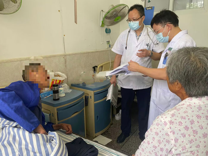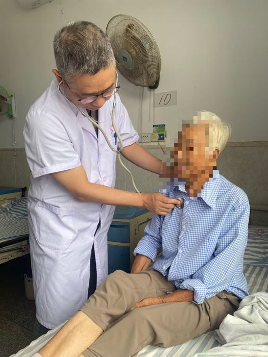 “婆婆,別著急,慢慢說,最近胸口還悶不悶?”一進(jìn)病房,蔣若瑜教授便徑直走向102歲高齡婆婆的病床。老人身患冠心病、心衰多年,病情復(fù)雜。蔣教授握住老人的手,耐心詢問病史,俯身細(xì)致聽診,逐頁翻閱病歷,就連化驗(yàn)單上的細(xì)微數(shù)據(jù)都仔細(xì)核對(duì)。片刻之間,他便全面掌握了病情,不僅為老人量身定制了個(gè)性化治療方案,還轉(zhuǎn)身向我院醫(yī)生細(xì)致講解:“高齡患者病情牽一發(fā)而動(dòng)全身,必須把循環(huán)、呼吸、內(nèi)分泌系統(tǒng)串聯(lián)起來綜合研判……”通俗易懂的話語,將復(fù)雜的醫(yī)學(xué)知識(shí)闡釋得清晰明了,在場(chǎng)醫(yī)生紛紛點(diǎn)頭贊同。