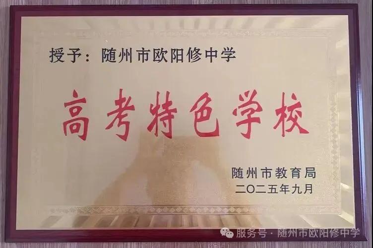 隨州新聞網(wǎng)訊 (通訊員余軍威)捷報傳佳音,桃李競芳菲。近日,隨州市教育局授予隨州市歐陽修中學(xué)“高考特色學(xué)校”榮譽(yù)稱號。此項殊榮,是我市教育主管部門對該校辦學(xué)特色、教學(xué)質(zhì)量和高考成果的充分肯定與高度認(rèn)可。