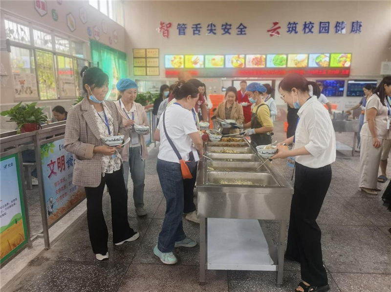 隨州日報訊(通訊員艾猛)“這道菜口感鮮嫩,孩子肯定愛吃!”“食材溯源系統(tǒng)掃一下就能看到來源,太讓人安心了”…… 9月17日上午,隨縣唐縣鎮(zhèn)第二中學(xué)校園開放日活動現(xiàn)場,家長們圍坐餐桌品嘗學(xué)生餐,對著展臺看板上的數(shù)字平臺頻頻點頭,現(xiàn)場不時響起贊許的議論聲。本次開放日以 “透明餐飲・守護成長” 為主題,將數(shù)字食堂建設(shè)作為核心展示內(nèi)容,通過品餐評餐、數(shù)字運營演示、實地參觀、家委會組建等多元形式,搭建起家校協(xié)同監(jiān)督的溝通橋梁。