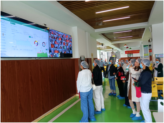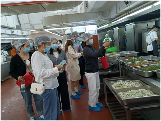 隨后,家長們在管理人員引導(dǎo)下走進(jìn)食堂后廚,參觀更衣室、加工間、留樣室等區(qū)域,詳細(xì)了解食材處理與餐飲制作流程,對規(guī)范的細(xì)節(jié)管理表示認(rèn)可。