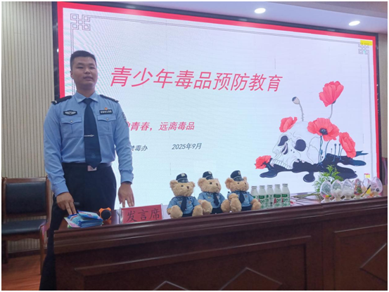 活動中,縣公安局禁毒大隊民警為同學們帶來了一場內容詳實的禁毒知識講座。通過真實案例、短視頻和圖片數據,民警系統(tǒng)講解了毒品的種類、危害及預防方法,重點揭示了新型毒品的隱蔽性和欺騙性,引導學生樹立正確防范意識。