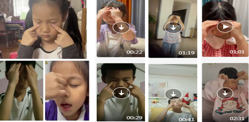 一年級各班將眼保健操規(guī)范動作視頻發(fā)至班級群中,一年級學生在家練習眼保健操規(guī)范動作,發(fā)揮家庭在近視防控工作中的重要作用,使學生認識眼健康的重要性。