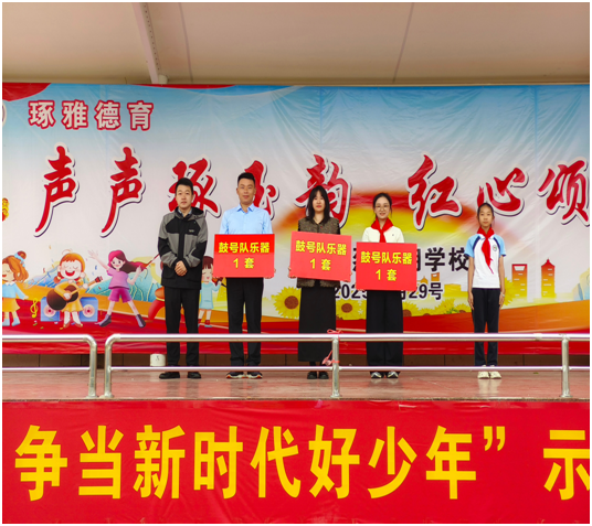 儀式上,團(tuán)縣委還向烈山湖學(xué)校、炎帝學(xué)校、厲山鎮(zhèn)中心小學(xué)三所學(xué)校捐贈(zèng)鼓號(hào)隊(duì)樂(lè)器。鏗鏘鼓點(diǎn)與嘹亮號(hào)聲將成為隊(duì)員們前進(jìn)的號(hào)角與向上的激勵(lì),助力少先隊(duì)文化建設(shè),讓少年們?cè)诠臉?lè)聲中綻放蓬勃風(fēng)貌。