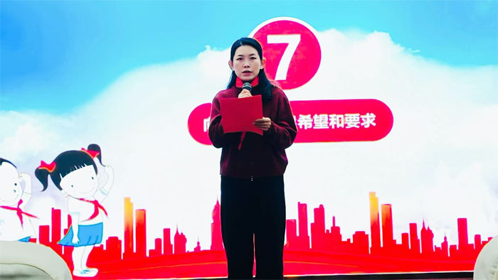 在激昂的《出旗曲》中,儀式正式拉開帷幕。全體隊(duì)員肅立,齊聲高唱《中國(guó)少年先鋒隊(duì)隊(duì)歌》,歌聲嘹亮,充滿力量。