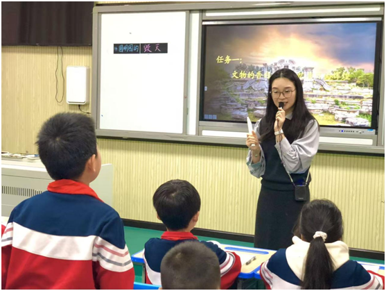 陳琳老師為六年級學生帶來古詩《浪淘沙》(其一)。陳老師以生動的語言帶領學生走進古詩意境,從詩句賞析到情感體悟,層層深入。周紫桐老師為五年級學生呈現(xiàn)《圓明園的毀滅》一課。周老師通過豐富的史料、直觀的圖片、視頻,引導學生了解圓明園昔日的輝煌與毀滅的慘狀。