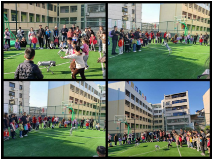 科技節(jié)的操場仿佛一個充滿奇幻色彩的科學(xué)樂園,各個展區(qū)前都圍滿了興致勃勃的“小觀眾”;顒蝇F(xiàn)場,最引人注目的明星非“科技狗”莫屬。這只仿生機器人隨著指令靈活地做出行走、翻滾、作揖甚至跳躍等高難度動作,其精準(zhǔn)的姿態(tài)控制和智能反應(yīng)引得孩子們發(fā)出一陣陣驚呼!八孟裾娴男」费!太聰明了!”小朋友們睜大了眼睛,緊緊跟隨著“科技狗”的身影,在互動中直觀感受到了機器人技術(shù)的奇妙。