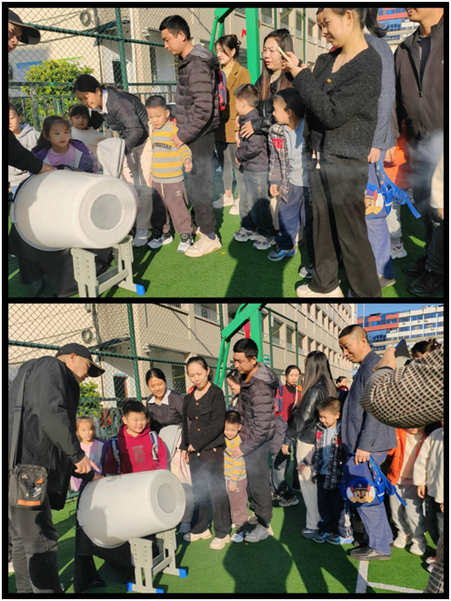 緊接著,來自“空氣炮”實驗將現(xiàn)場氣氛推向高潮。講解員用力拍打特制箱體,“砰”的一聲,一個清晰的白色煙圈渦環(huán)急速射出,這一神奇的現(xiàn)象讓孩子們目瞪口呆,隨即爆發(fā)出熱烈的掌聲。在老師的邀請下,幾位小朋友親自上場體驗,他們用力拍打桶身,看著自己親手制造的“空氣炮彈”飛向遠(yuǎn)方,臉上洋溢著興奮與成就感,這些互動性極強的項目,不僅讓孩子們直觀感受到科學(xué)的魅力,更在他們心中播下了探索與創(chuàng)新的種子。
