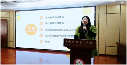 緊接著,黨支部書記、校長孫秀芬在致辭中指出,孩子的健康與安全是學校一切工作的基石,“透明廚房”建設與“數(shù)字食堂”推進是學校優(yōu)化服務、提升管理質效的關鍵舉措。她呼吁家校雙方繼續(xù)增進理解、加強協(xié)作,匯聚更多智慧與力量,共同為孩子們營造一個不僅安全、健康,而且營養(yǎng)、美味的餐飲環(huán)境,助力其茁壯成長。