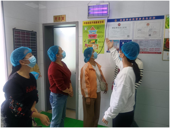 隨后,李佳霓老師帶領家長實地查看操作間、儲物架、留樣區(qū),講解管理細節(jié):每日開餐前全方位消殺并實時存檔;食品留樣規(guī)范,記錄詳實;食材進出庫臺賬精準,出餐全程做好保溫與衛(wèi)生防護。家長們邊聽邊拍照,對食堂整潔的環(huán)境、嚴謹?shù)牧鞒踢B連稱贊。