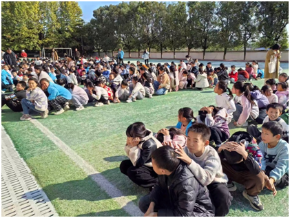 第二聲疏散警報響起后,全體學(xué)生在教師引導(dǎo)下,按預(yù)定路線迅速撤離。大家雙手護頭、彎腰低姿,沿指定通道有序向操場集結(jié)。各樓梯口及轉(zhuǎn)彎處均設(shè)有教師值守,確保撤離過程安全順暢。僅用時80秒,全體師生已全部到達安全區(qū)域。